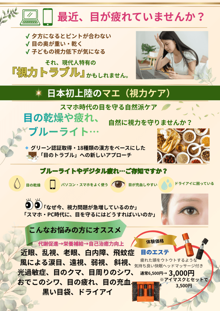 日本初上陸の前★たった20分で視界スッキリ!~目のエステ~