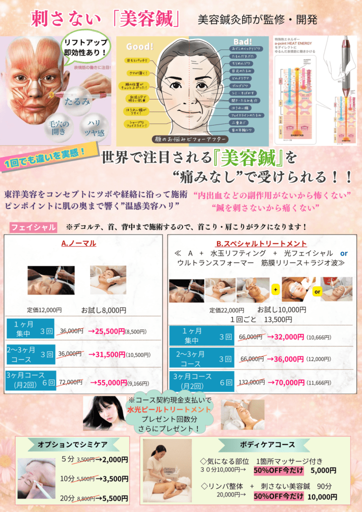 たるみ・ほうれい線が気になる…温熱アプローチ✨刺さない美容鍼✨ 導入しました